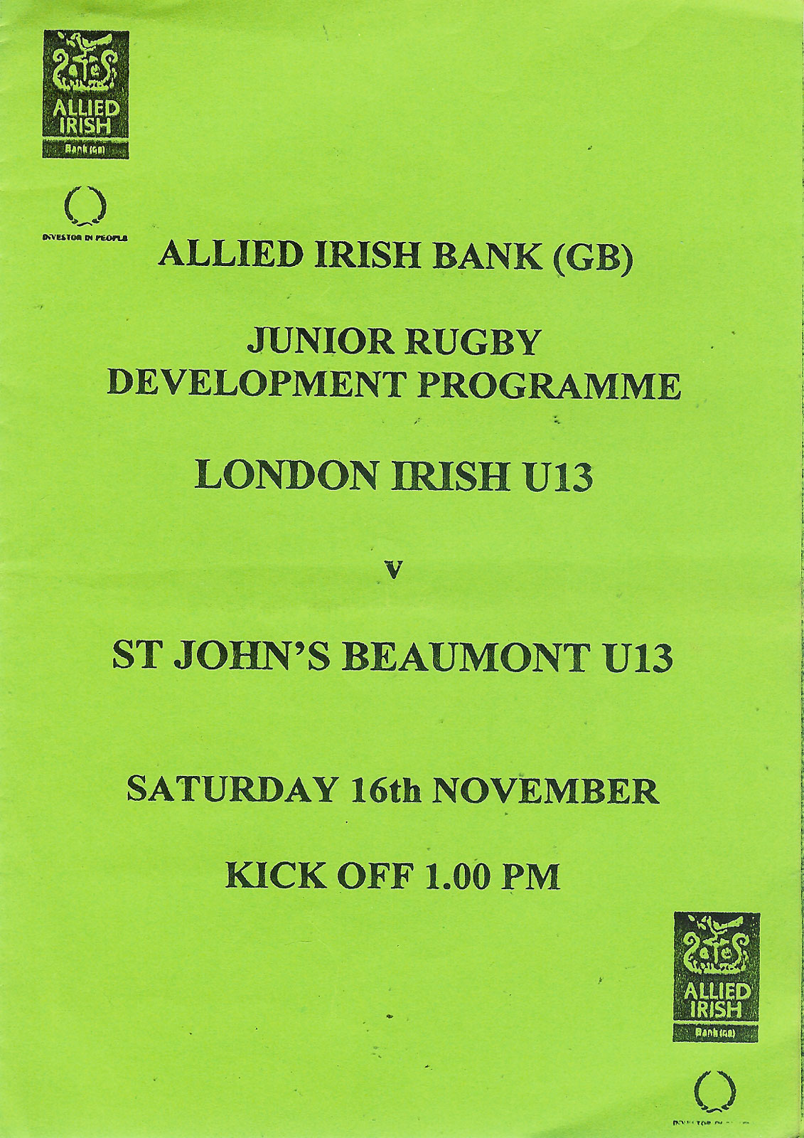 London Irish Under 13 v St John's Beaumont U13 | 16 Nov year unknown | London Irish | very good Ref: RC558-B-prcb-loi----1116stb - £2.00 |