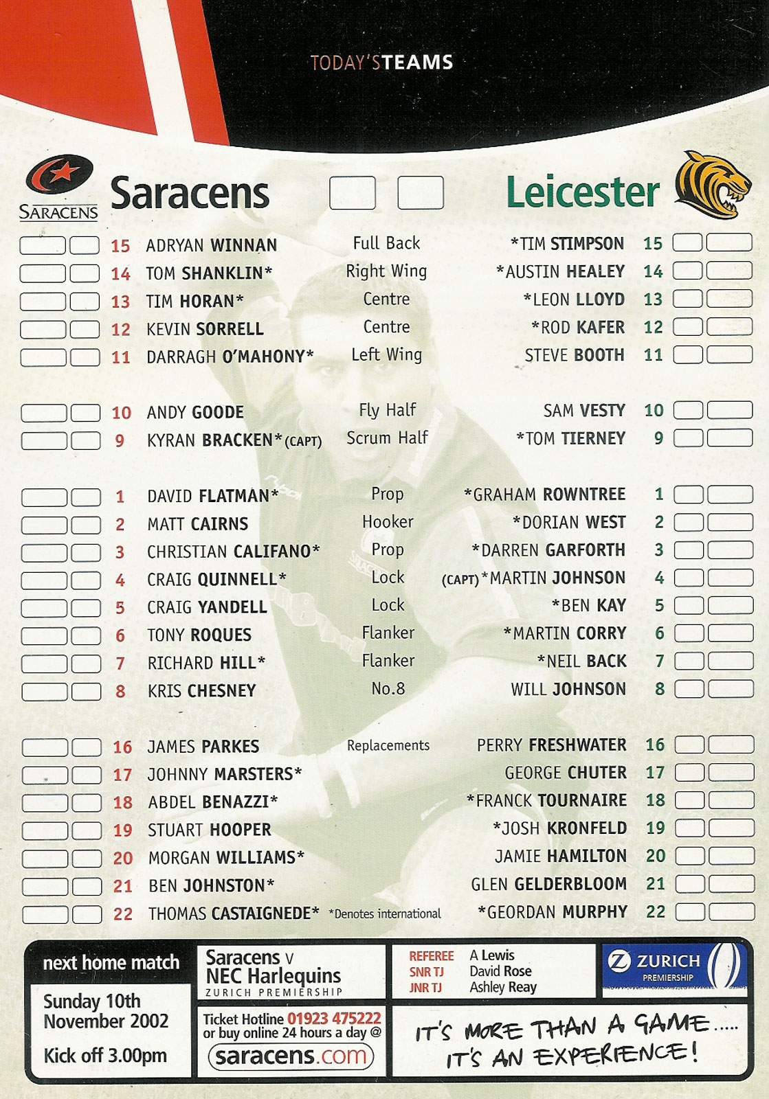 22 Feb 2004 Saracens   very good