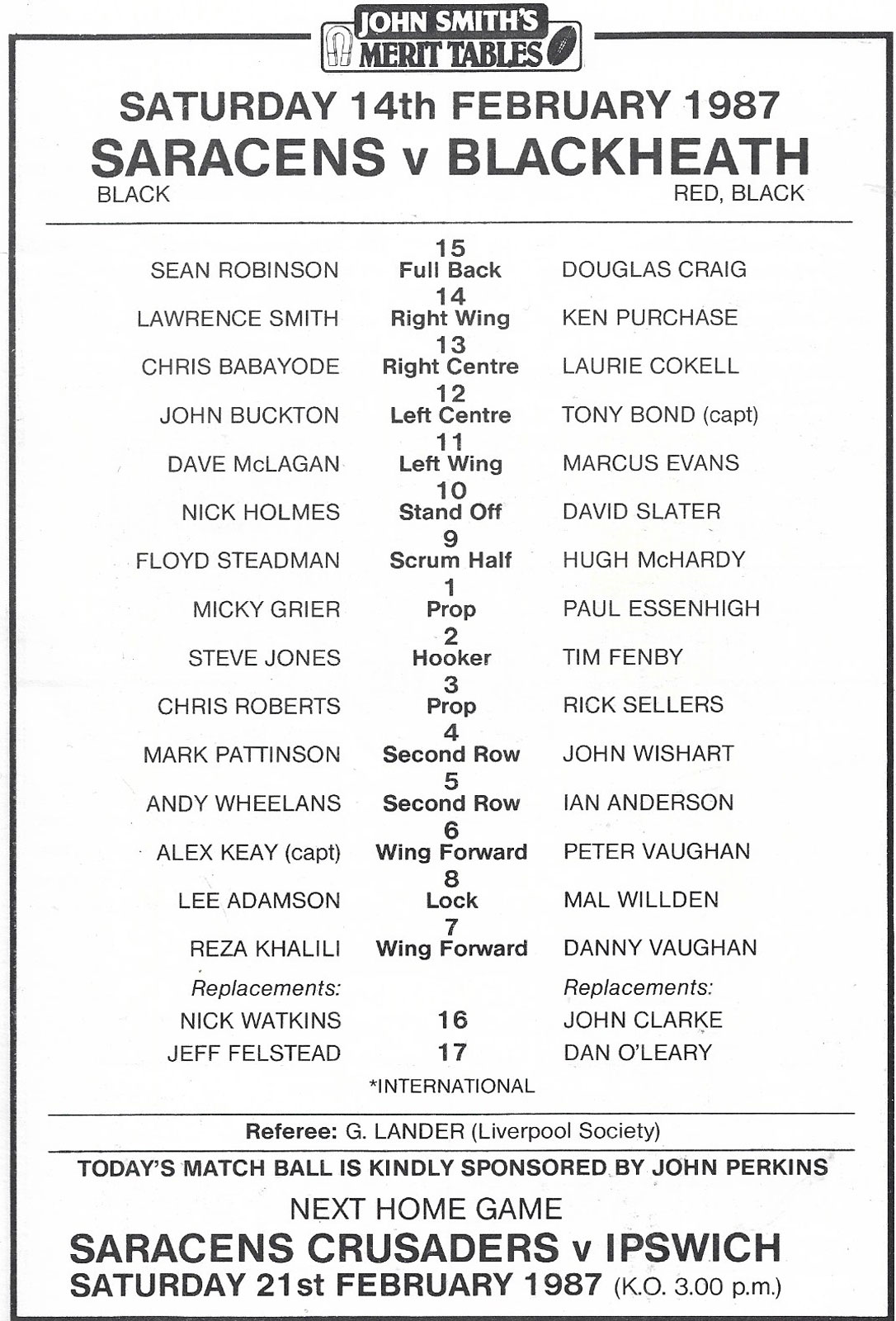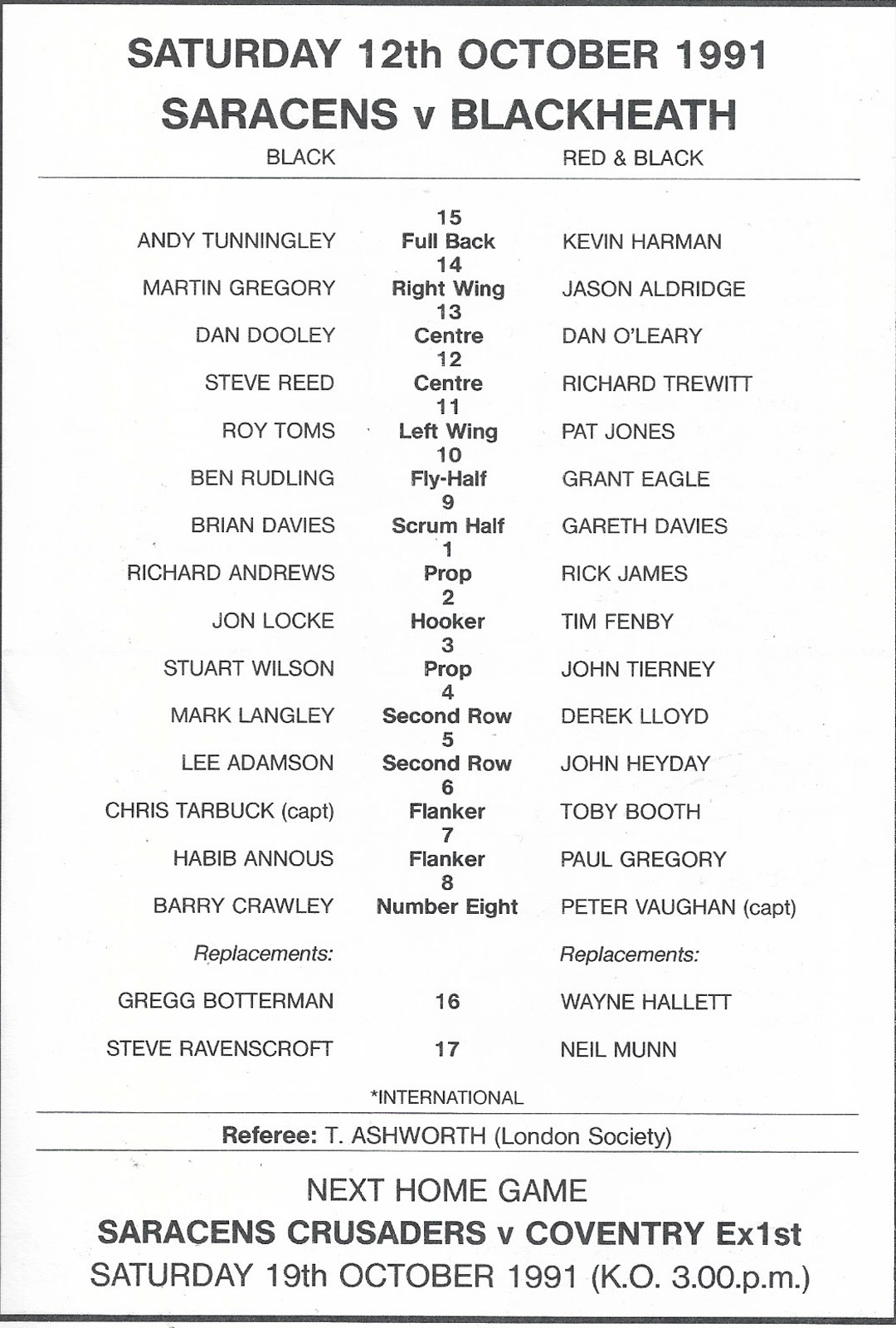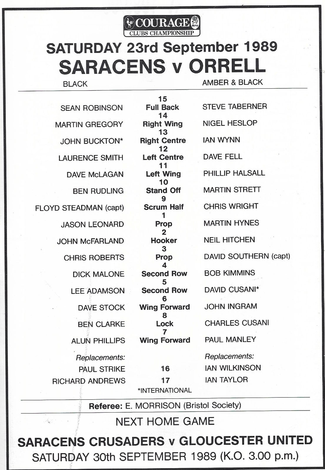 21 Sep 2003 Saracens   very good