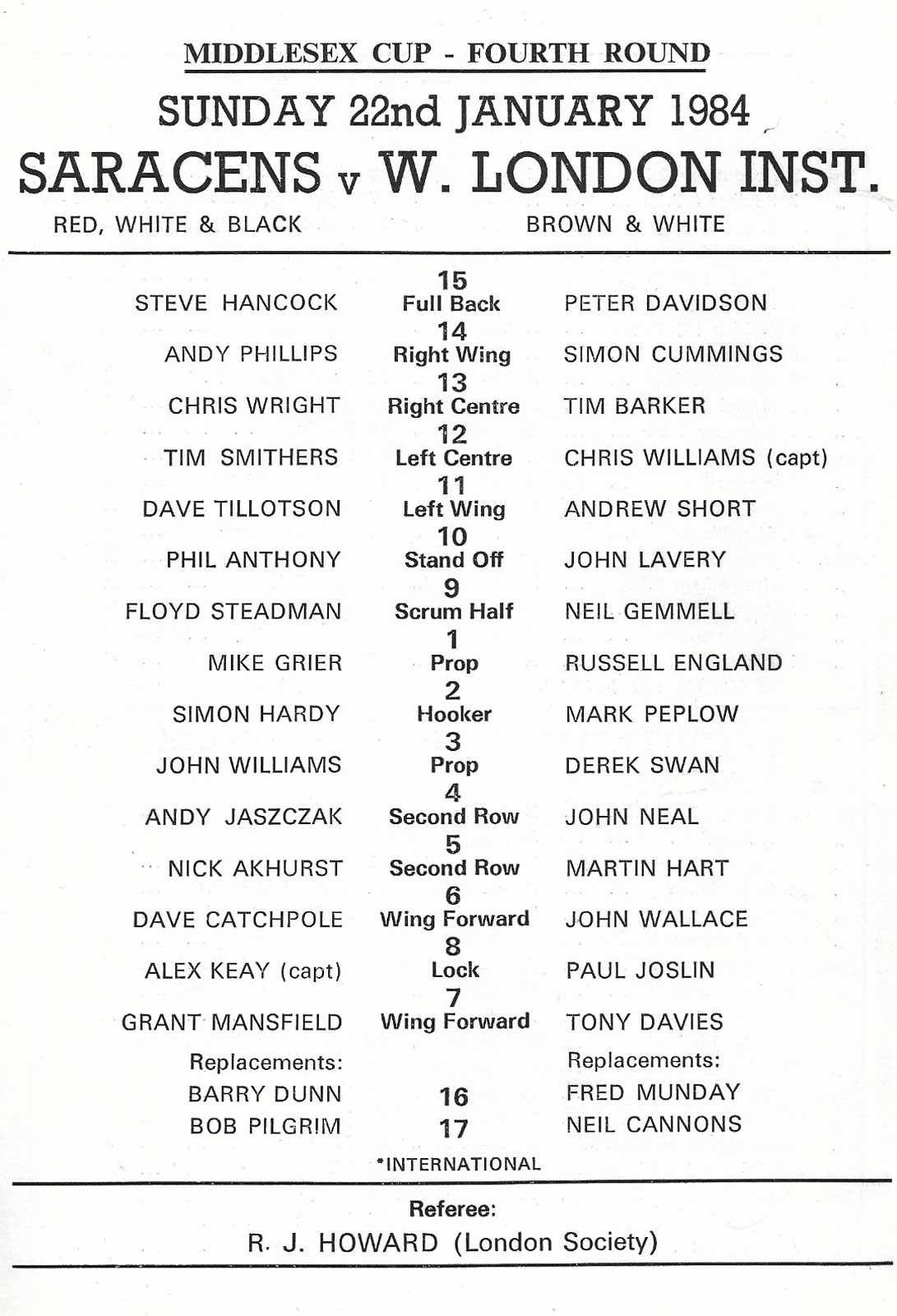96-1982-83.jpg (67854 bytes) Saracens v Wasps