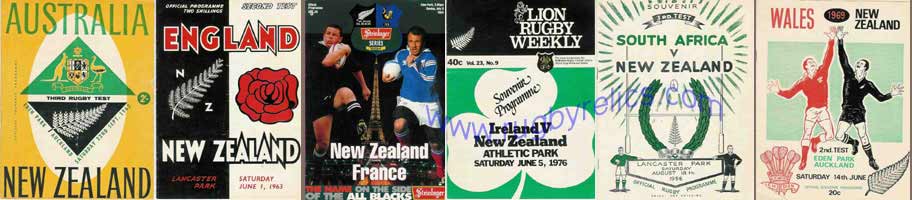 For programmes of international matches played away by New Zealand - click on the teams below to be taken directly to programmes for New Zealand versus that team away. AUSTRALIA - ENGLAND - FRANCE - IRELAND - ITALY - SCOTLAND - SOUTH AFRICA - WALES - OTHERS v NEW ZEALAND