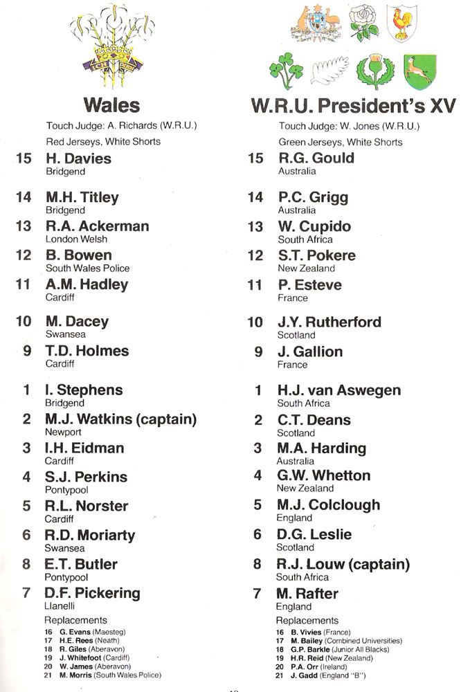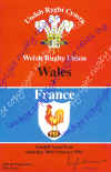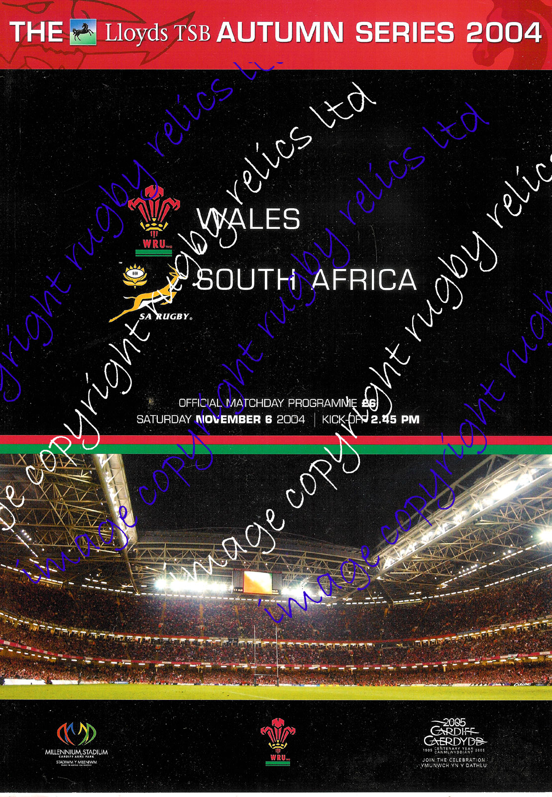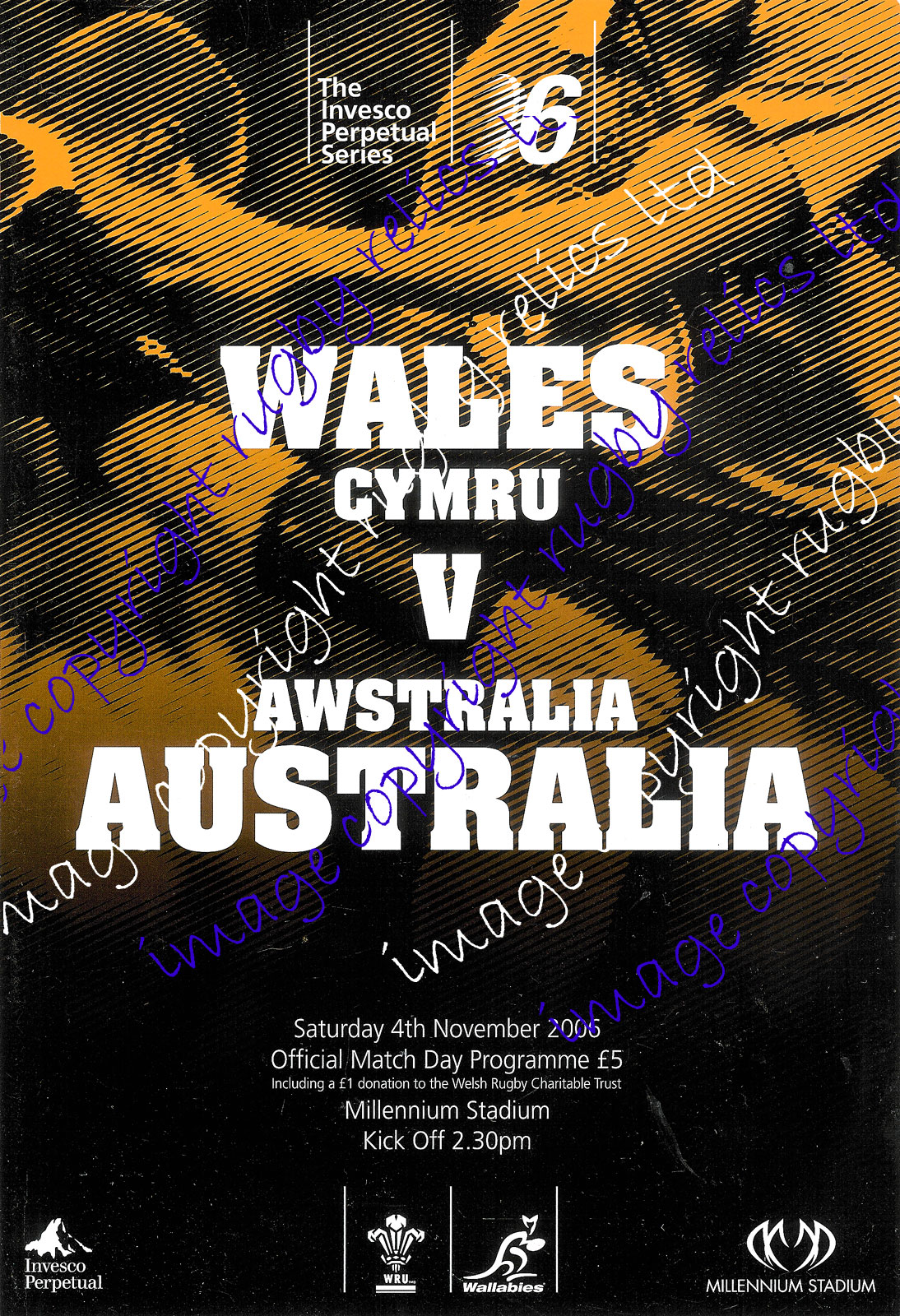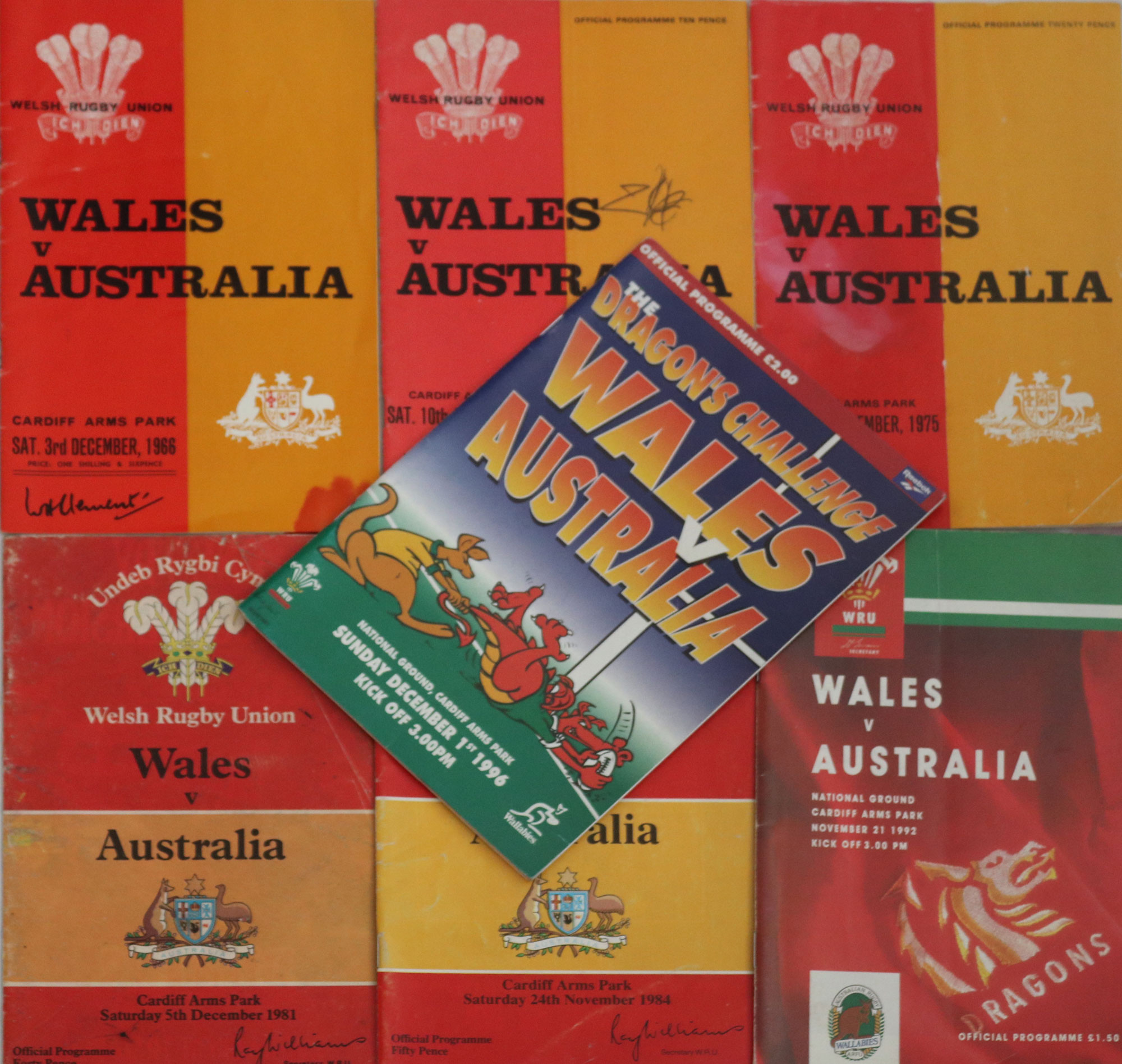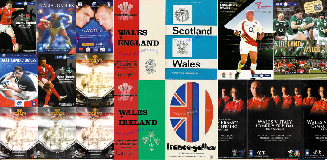 For programmes of international matches played away by Wales - click on the teams below to be taken directly to programmes for Wales versus that team away. AUSTRALIA - ENGLAND - FRANCE - IRELAND - ITALY - NEW ZEALAND - SCOTLAND - SOUTH AFRICA - OTHERS v WALES |