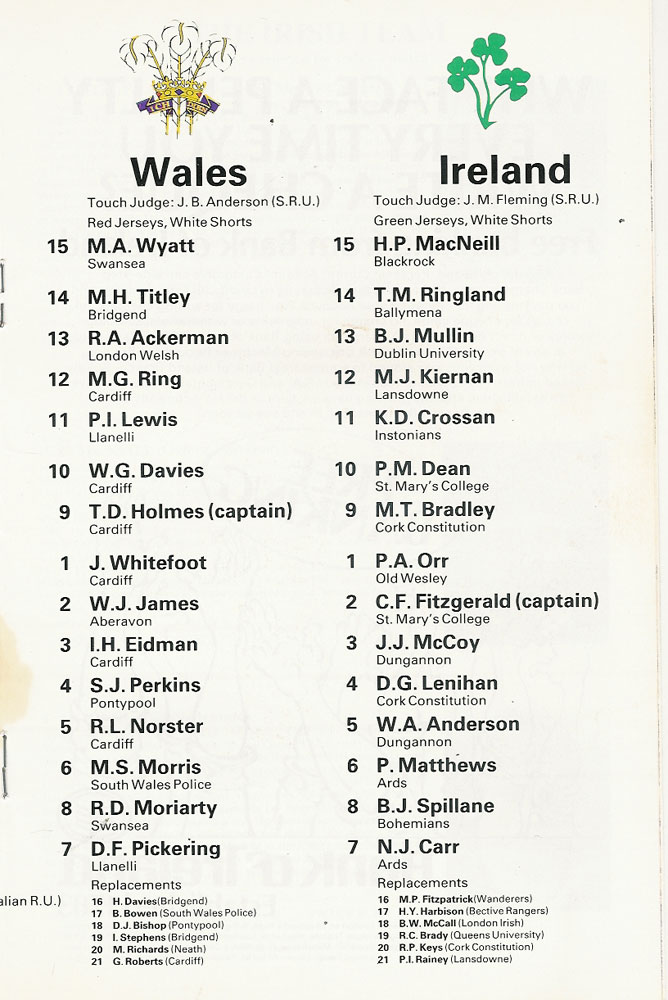 Wales v Scotland | 20 Mar 1982 | Cardiff | 18-34 | good