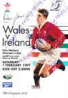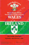 WELSH INTERNATIONAL PROGRAMMES A selection of programmes for rugby international matches played at home by Wales. WALES v ARGENTINA - AUSTRALIA - BARBARIANS - CANADA - ENGLAND - FIJI - FRANCE - IRELAND - ITALY - JAPAN - NEW ZEALAND - ROMANIA - SAMOA - SCOTLAND - SOUTH AFRICA - TONGA - USA - OTHERS SETS AND GROUPS BY YEAR - WALES ON TOUR OVERSEAS - CLICK HERE - PROGRAMMES ON OFFER - BUNDLES |