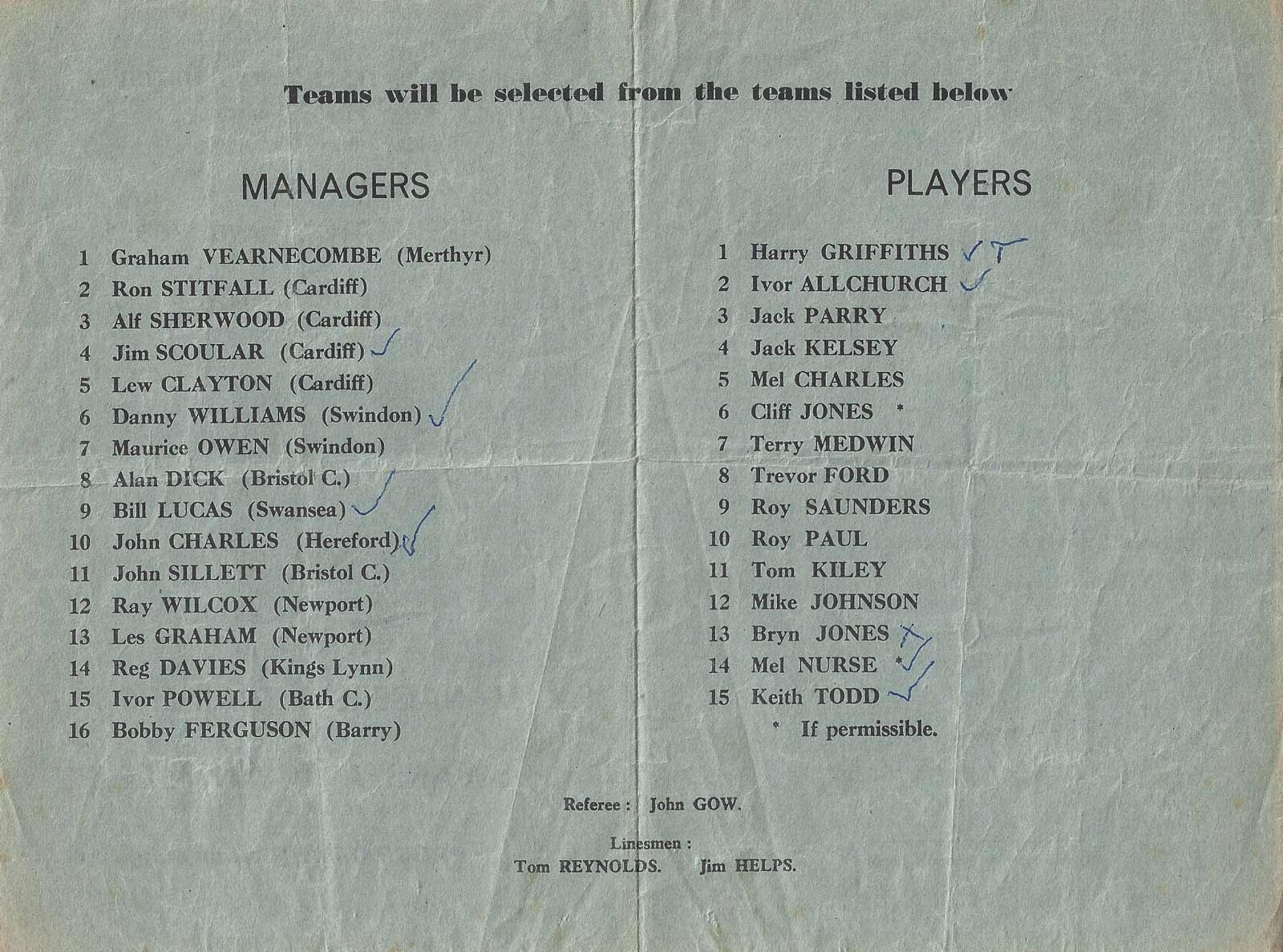 Allchurch) and Mel Charles (left hand middle) have signed the booklet.