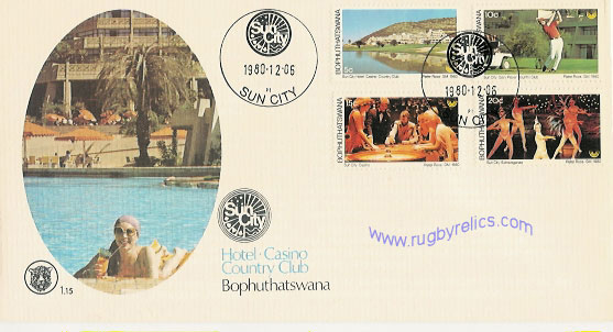 6.12.80 Tourism, Sun City official FDC (4/1), P H/S Sun City, set of 4 stamps inc "Gary Player Country Club", Ref: F1-45-osgofd-bop.19801206- £3.00 |