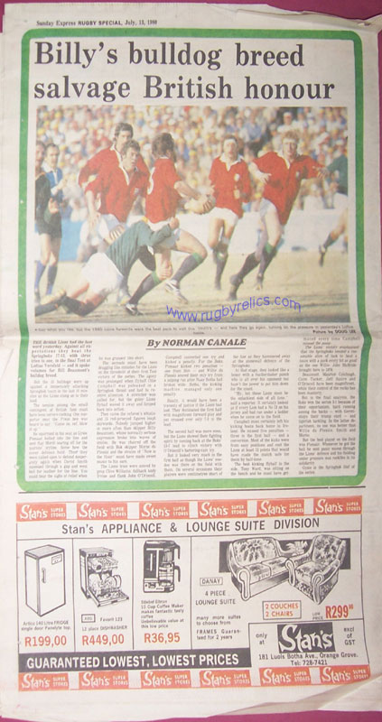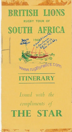 Rugby with the British & Irish Lions - On this page you will find a great selection of Lions memorabilia, collectables & gifts including, books, jerseys, autographs, photographs, postcards, badges, prints, tickets, scrapbooks, etc, please scroll down the page to view what's on offer........... View memorabilia from these Lions tours:-