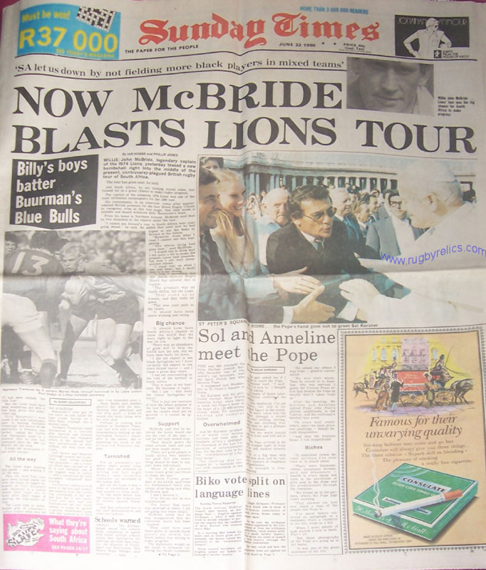 1997 BRITISH & IRISH LIONS tour of SOUTH AFRICA